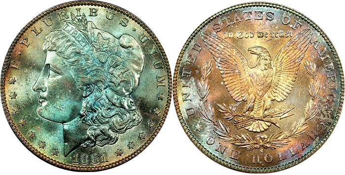 View the largest gallery of high-end and Monster rainbow toned Morgan dollars, an informational guide on how to tell natural vs. artificial toning, learn to price toned Morgans, view auction results of rainbow Morgans, and view what characteristics to look for in high-end toned rainbow Morgan dollars.
