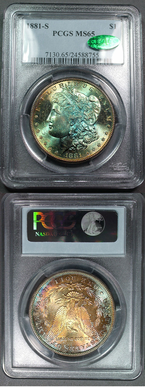 1881-S $1 PCGS MS65 CAC Blue Toned Morgan