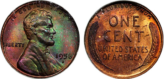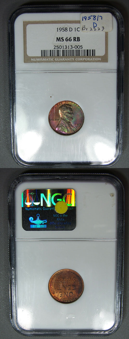 1958-D 1c NGC MS66RB Rainbow Toned Lincoln Cent