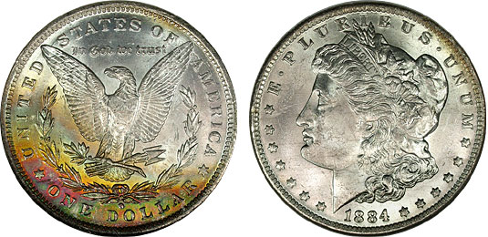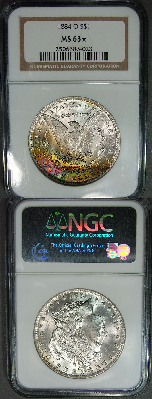1884-O $1 NGC MS63* STAR Rainbow Toned Morgan Dollar