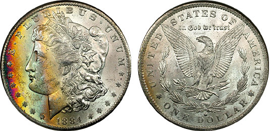 rainbow Morgan dollars.