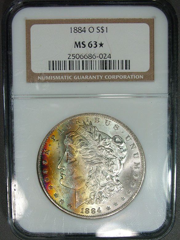 1884-O $1 NGC MS63* STAR Neon Rainbow Toned Morgan