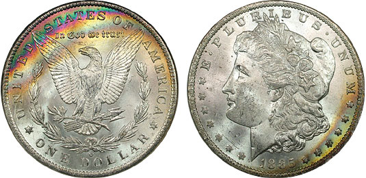 View the largest gallery of high-end and Monster rainbow toned Morgan dollars, an informational guide on how to tell natural vs. artificial toning, learn to price toned Morgans, view auction results of rainbow Morgans, and view what characteristics to look for in high-end toned rainbow Morgan dollars.