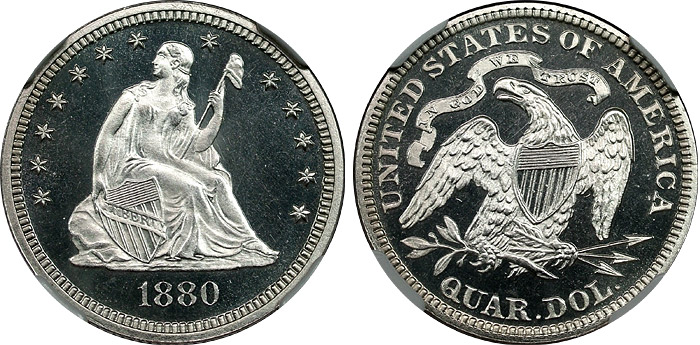 1880 25c NGC PF67 CAMEO Proof Seated Quarter - PQ+++