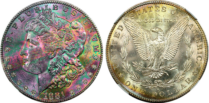 rainbow Morgan dollars.