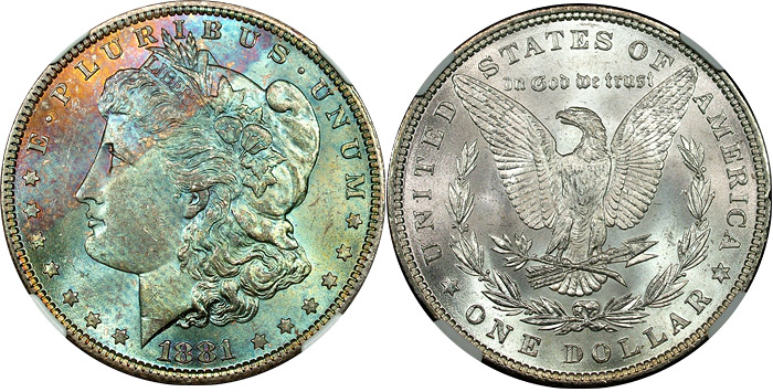 1881 $1 NGC MS64* STAR Textile Blue Rainbow Morgan
