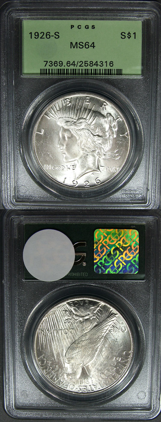 1926-S $1 PCGS MS64 Lustrous Peace Dollar - VAM 1F - R6