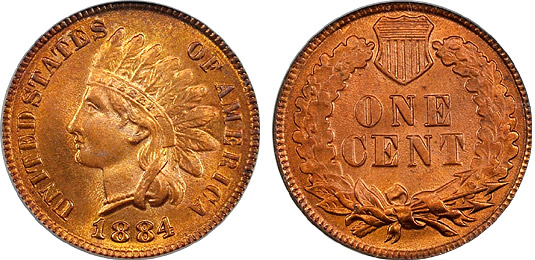 This wonderful Indian cent features a starburst of coppery gold on the obverse. The starbust effect is metal flow from a heavily used die.
