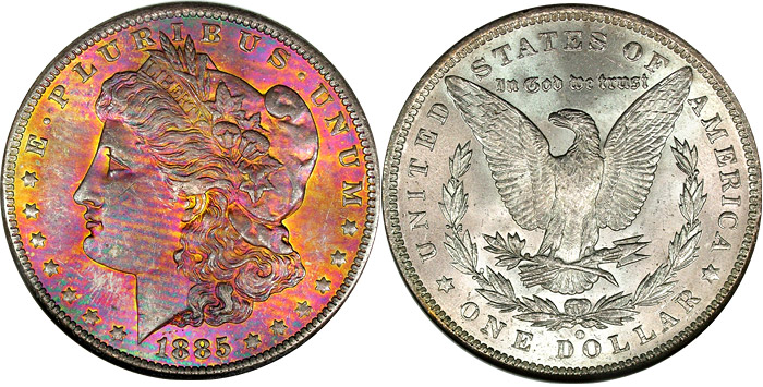 View the largest gallery of high-end and Monster rainbow toned Morgan dollars, an informational guide on how to tell natural vs. artificial toning, learn to price toned Morgans, view auction results of rainbow Morgans, and view what characteristics to look for in high-end toned rainbow Morgan dollars.