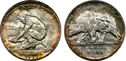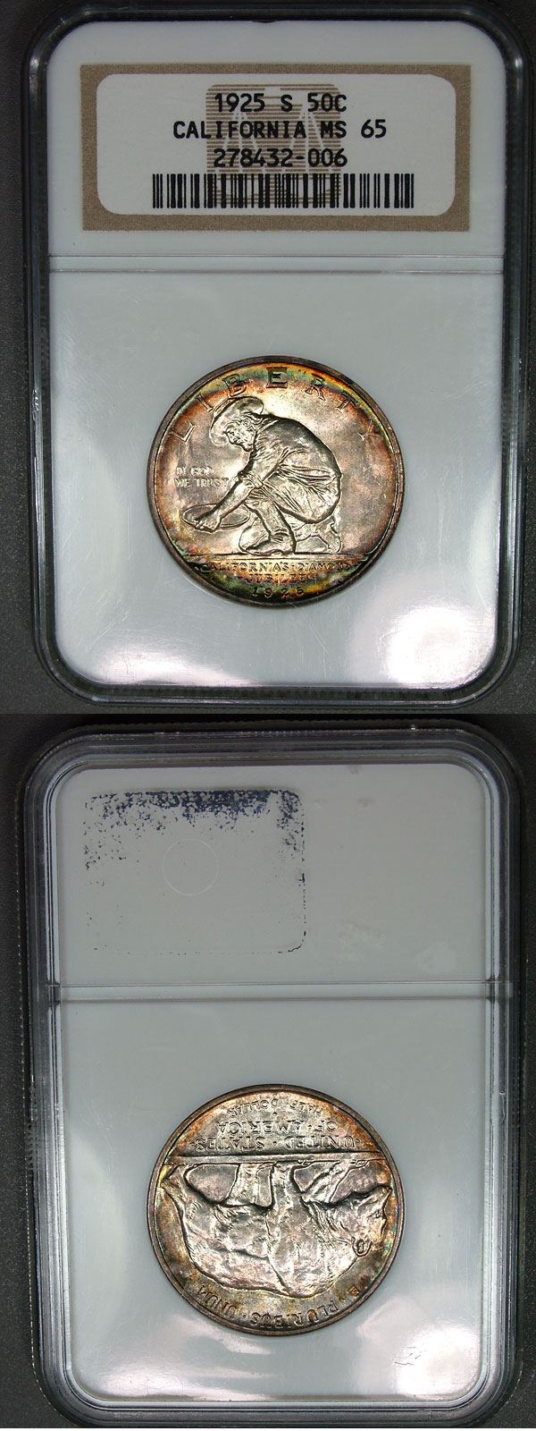 The obverse is ringed with attractive rainbow shades. The luster is nice and bright and the strike is full. Toned commemoratives are VERY hard to come by right now so finding this beauty was a pleasant surprise. I am pleased to offer it here.