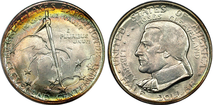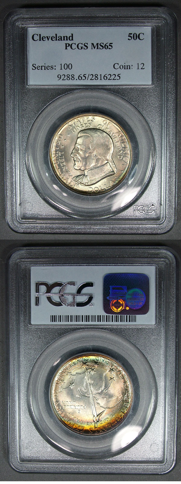 1936 50c PCGS MS65 Lustrous Rainbow Cleveland Commem