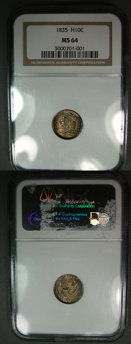1835 H10c NGC MS64 Toned Near-Gem Bust Half Dime
