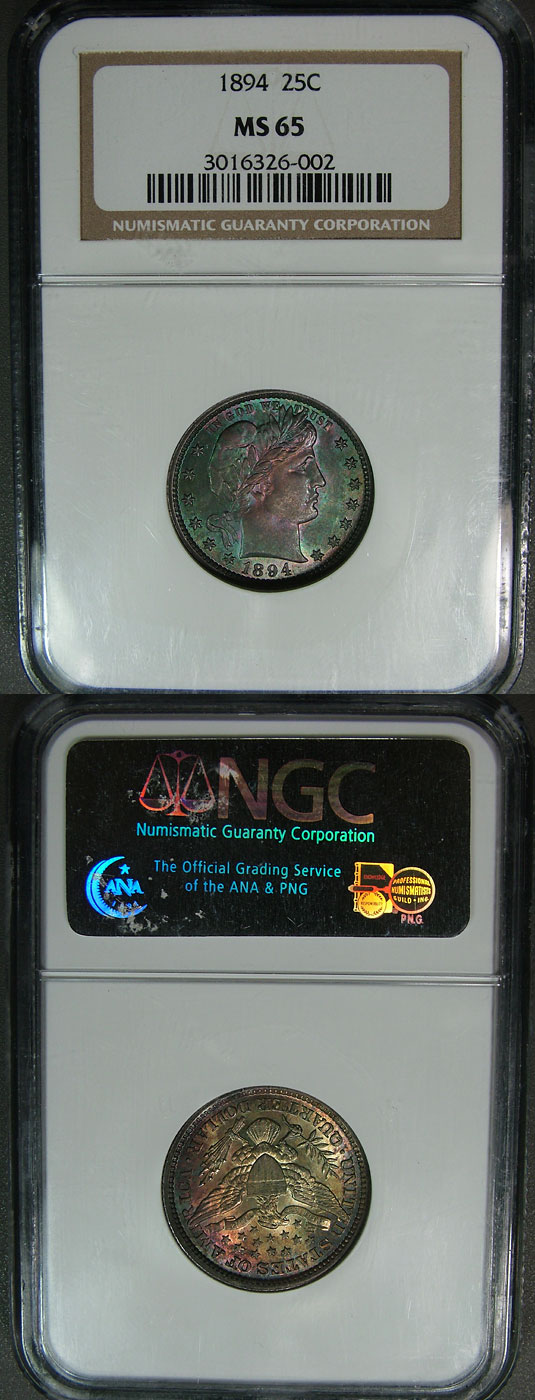 1894 25c NGC MS65 Monster Toned Barber Quarter