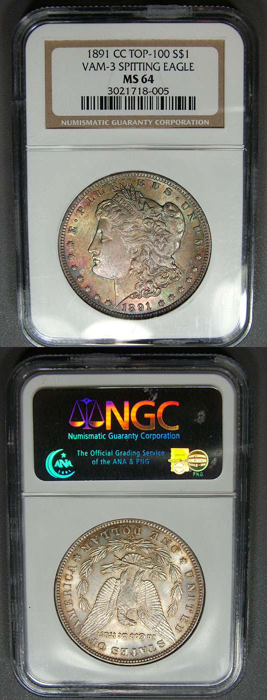 1891-CC $1 NGC MS64 Toned Morgan - VAM 3 Spitting Eagle