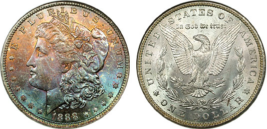 View the largest gallery of high-end and Monster rainbow toned Morgan dollars, an informational guide on how to tell natural vs. artificial toning, learn to price toned Morgans, view auction results of rainbow Morgans, and view what characteristics to look for in high-end toned rainbow Morgan dollars.