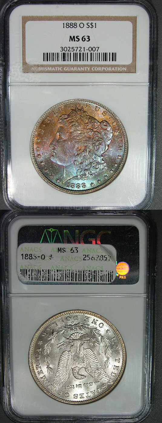 1888-O $1 NGC MS63 Caribbean Beach Toned Morgan Dollar