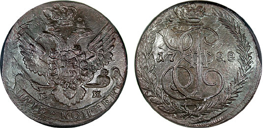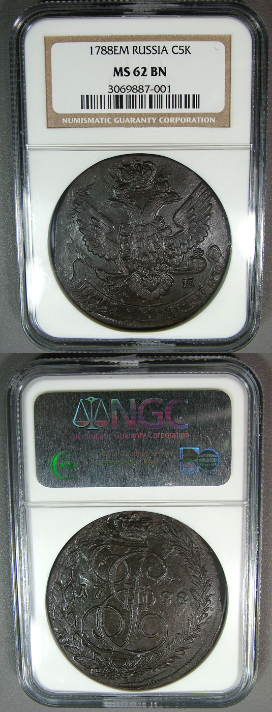 1788 NGC MS62BN Russia EM 5 Kopeks C59.3 Catherine II