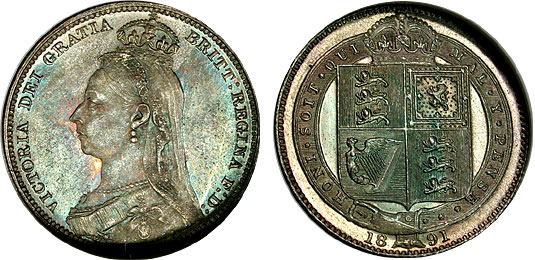1891 1S NGC MS65 Superbly Toned Great Britan Shilling