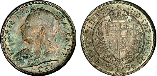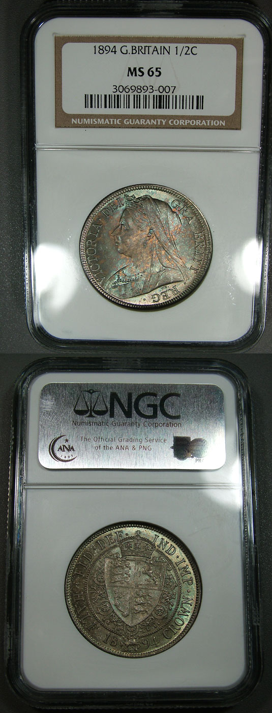 1894 1/2C NGC MS65 Toned Great Britan Half Crown