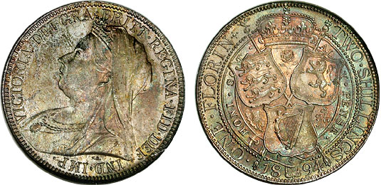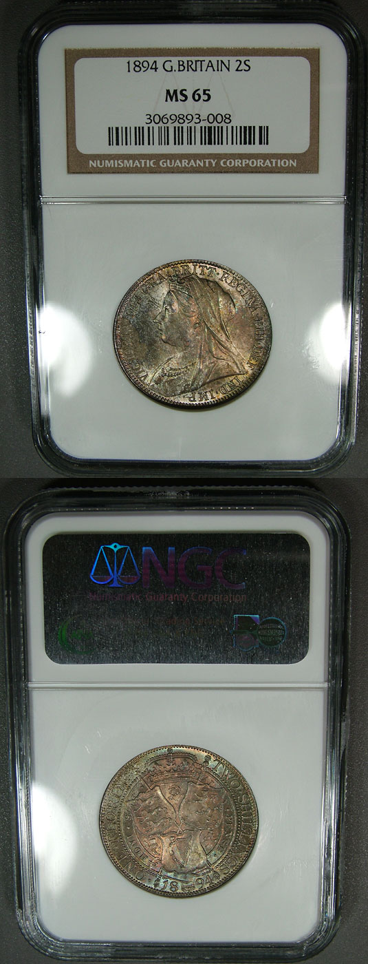1894 2S NGC MS65 Toned Lustrous Great Britan Two Shillings