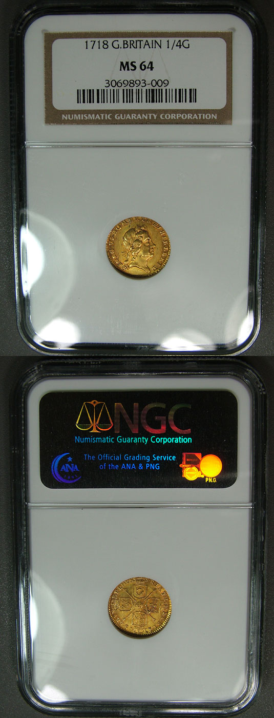 1718 1/4G NGC MS64 Stunning Original Gr. Britan Qtr. Guinea