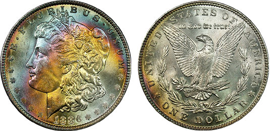 View the largest gallery of high-end and Monster rainbow toned Morgan dollars, an informational guide on how to tell natural vs. artificial toning, learn to price toned Morgans, view auction results of rainbow Morgans, and view what characteristics to look for in high-end toned rainbow Morgan dollars.