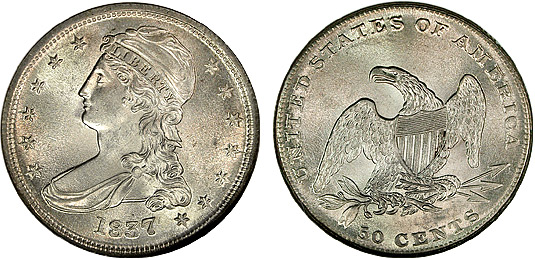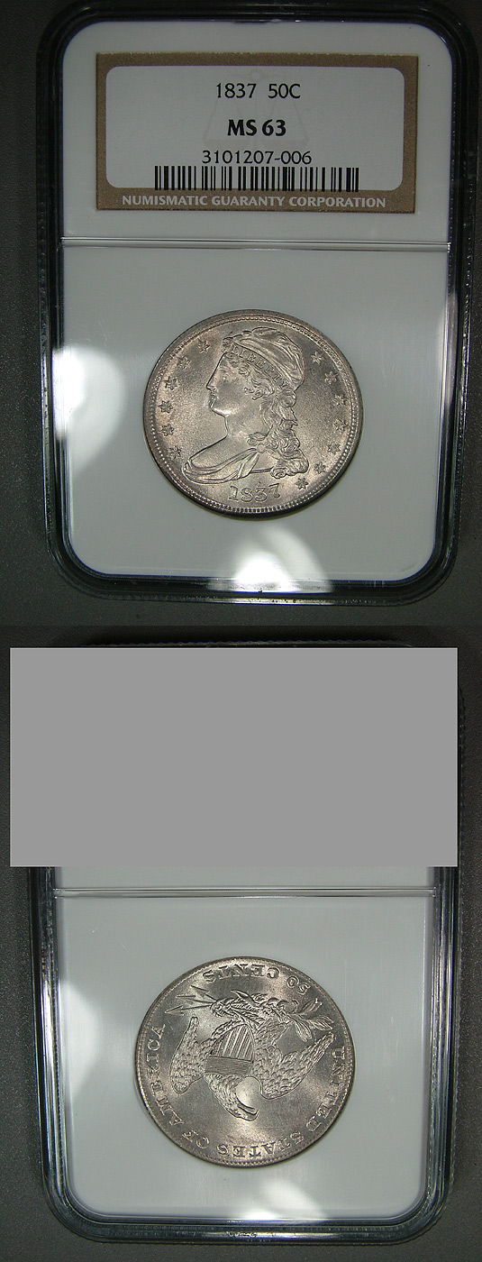 1837 50c NGC MS63 Lustrous and PQ Capped Bust Half