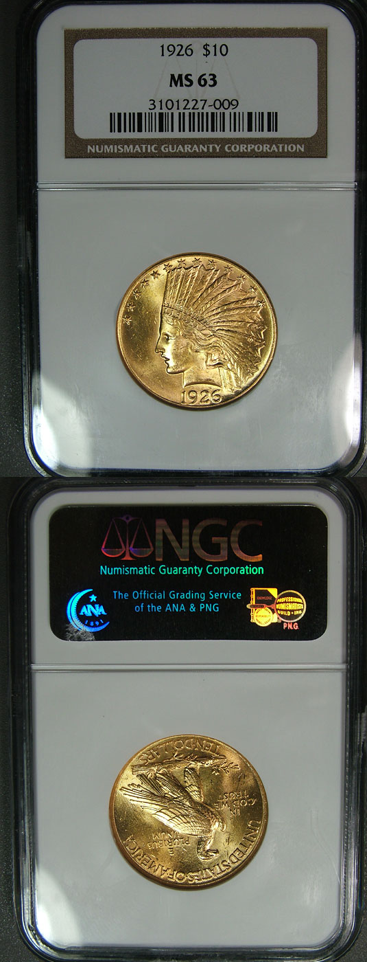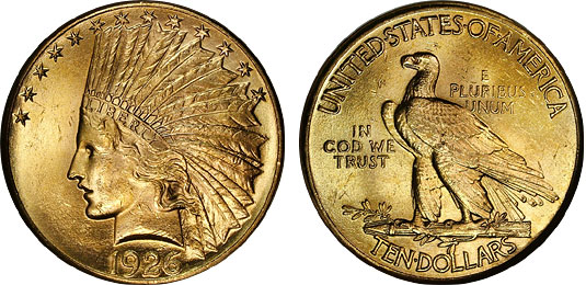 1926 $10 NGC MS63 Lustrous Indian Gold Eagle