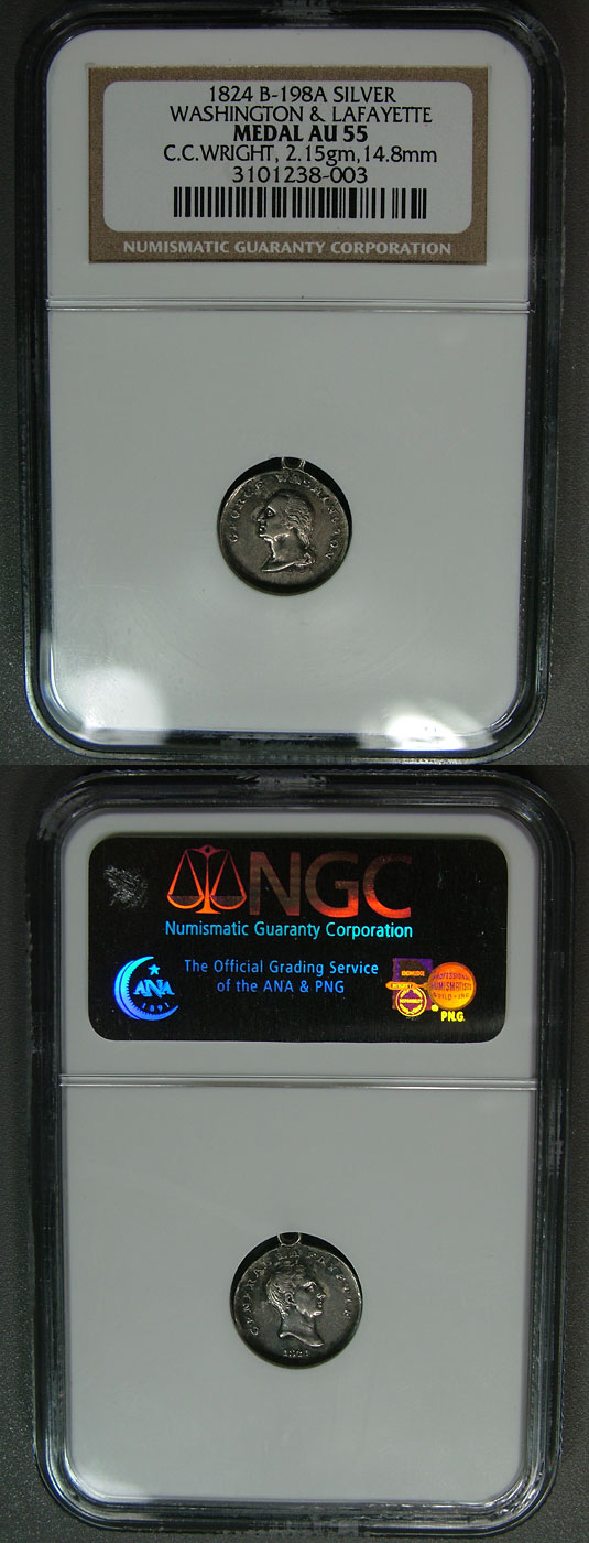 1824 Medal NGC AU55 Washington and Lafayette B-198a
