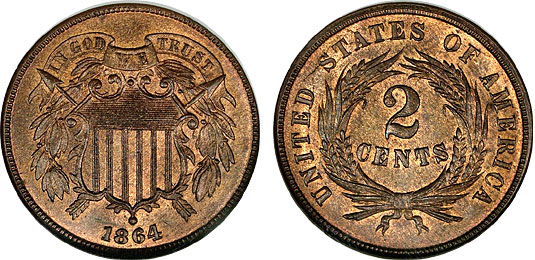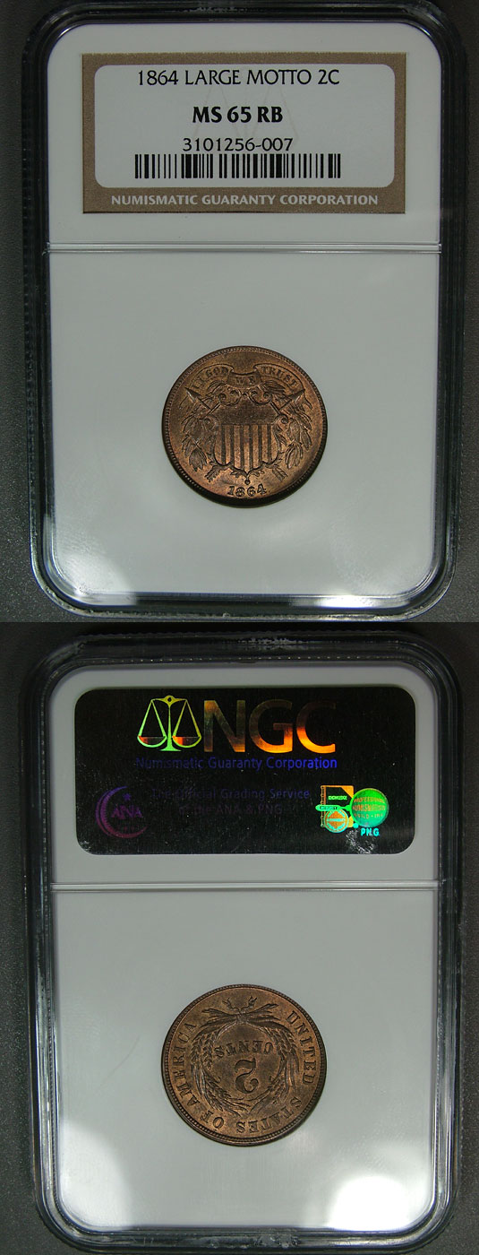 1864 2c NGC MS65RB Choice Gem Two Cent Piece - Lg Moto