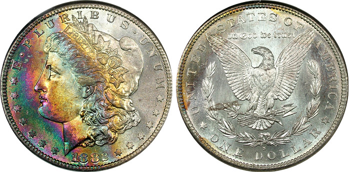 rainbow Morgan dollars.