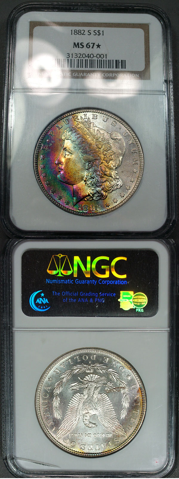 1882-S NGC MS67* STAR Neon Banded Rainbow Toned Morgan