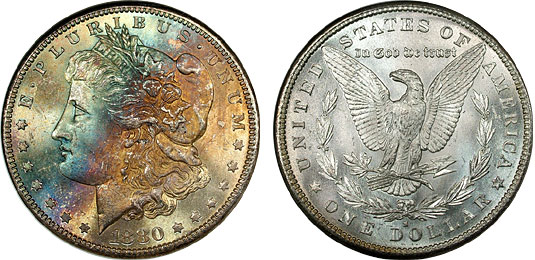 View the largest gallery of high-end and Monster rainbow toned Morgan dollars, an informational guide on how to tell natural vs. artificial toning, learn to price toned Morgans, view auction results of rainbow Morgans, and view what characteristics to look for in high-end toned rainbow Morgan dollars.