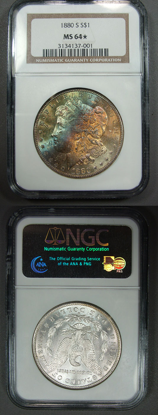 1880-S $1 NGC MS64* Icy Blue & Tan Toned Morgan Dollar