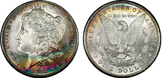 View the largest gallery of high-end and Monster rainbow toned Morgan dollars, an informational guide on how to tell natural vs. artificial toning, learn to price toned Morgans, view auction results of rainbow Morgans, and view what characteristics to look for in high-end toned rainbow Morgan dollars.