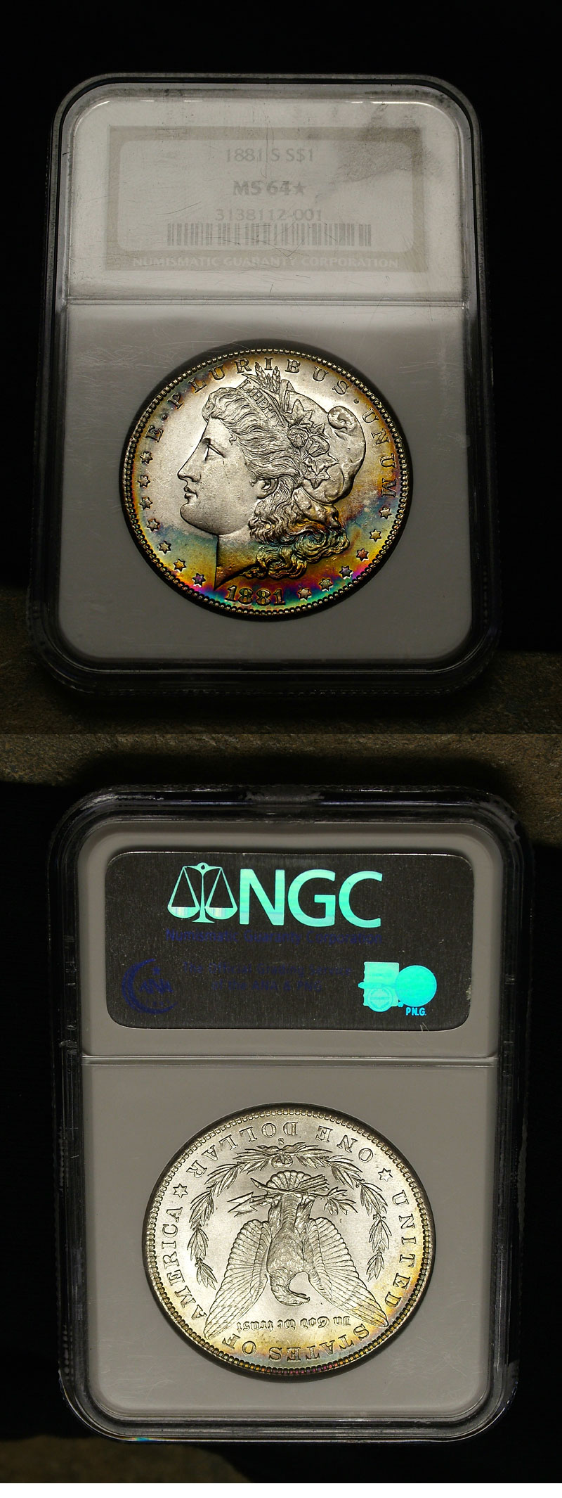 1881-S NGC MS64* STAR Neon Rainbow Toned Morgan PL?