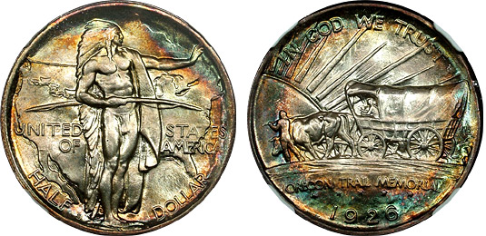 1926-S 50c NGC MS67 Stunningly Toned Lustrous Oregon