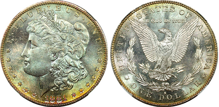 View the largest gallery of high-end and Monster rainbow toned Morgan dollars, an informational guide on how to tell natural vs. artificial toning, learn to price toned Morgans, view auction results of rainbow Morgans, and view what characteristics to look for in high-end toned rainbow Morgan dollars.