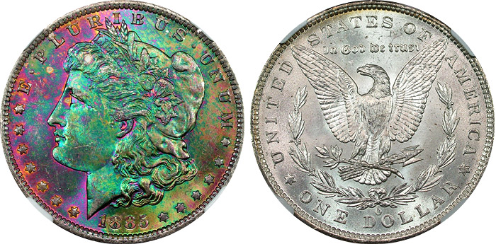 rainbow Morgan dollars.