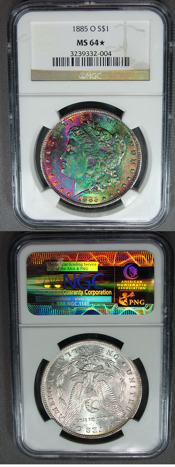 1885-O $1 NGC MS64* STAR Monster Toned Morgan - Darth Verde