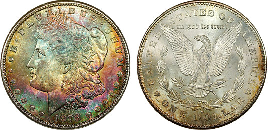 View the largest gallery of high-end and Monster rainbow toned Morgan dollars, an informational guide on how to tell natural vs. artificial toning, learn to price toned Morgans, view auction results of rainbow Morgans, and view what characteristics to look for in high-end toned rainbow Morgan dollars.