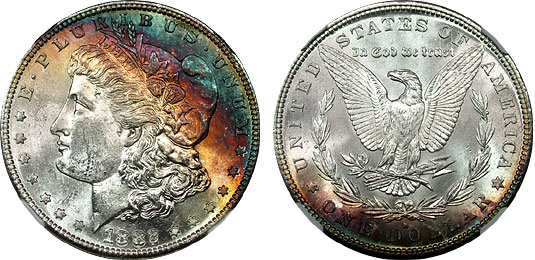 View the largest gallery of high-end and Monster rainbow toned Morgan dollars, an informational guide on how to tell natural vs. artificial toning, learn to price toned Morgans, view auction results of rainbow Morgans, and view what characteristics to look for in high-end toned rainbow Morgan dollars.