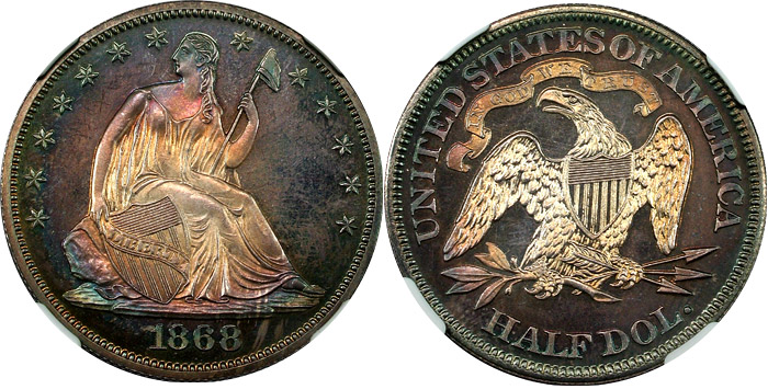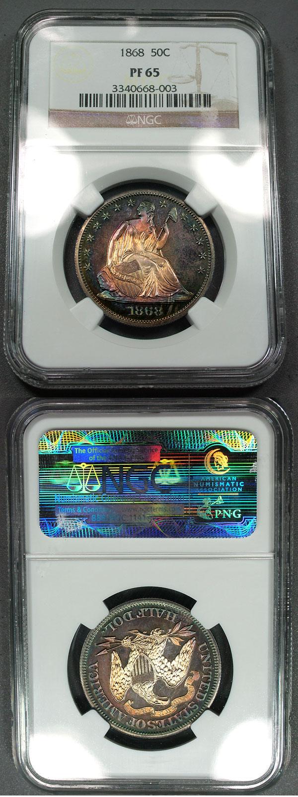 1868 50c NGC PF65 Beautiful Near Cameo Toned Proof Seated Half