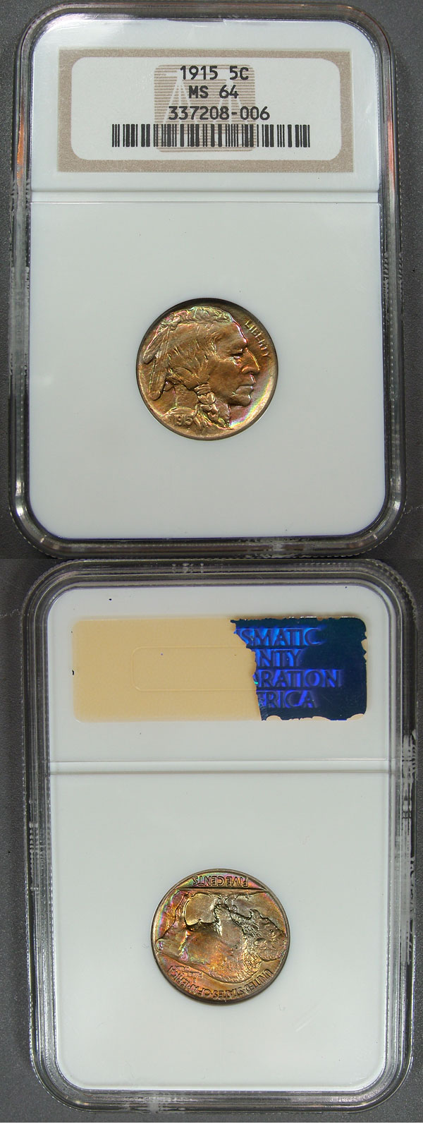 1915 5c NGC MS64 Monster Toned Buffalo Nickel