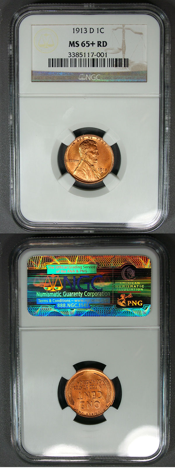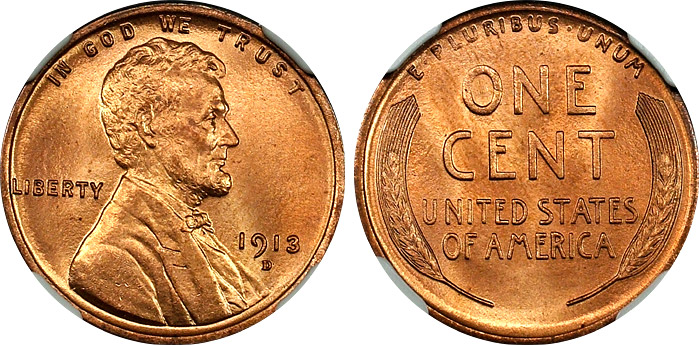 1913-D 1c NGC MS65+ RED Blazing Lincoln Cent