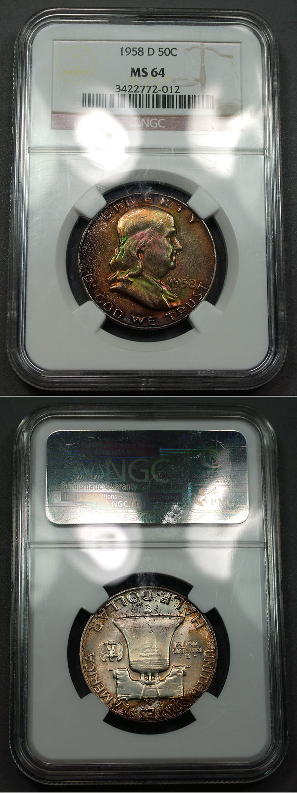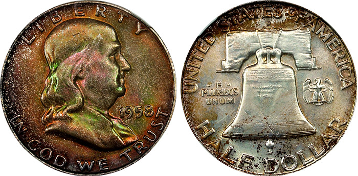 1958-D 50c NGC MS64 Deeply Toned Franklin Half Dollar