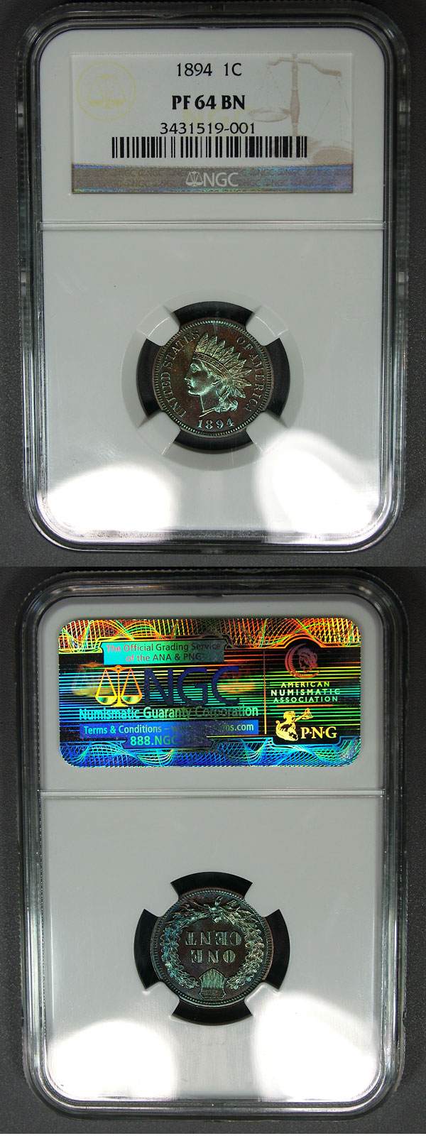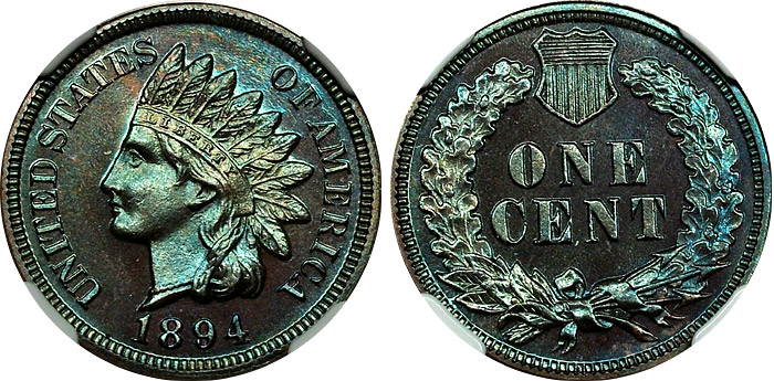 1894 1c NGC PF64BN Turquoise Toned Proof Indian Cent