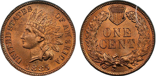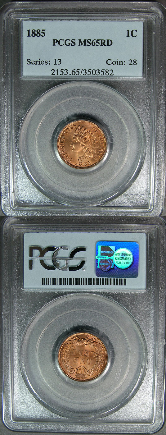 1885 1c PCGS MS65RD Stunning Indian Cent