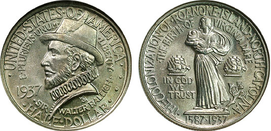 1937 50c NGC MS65 Near PL Roanoke Commem - CAC