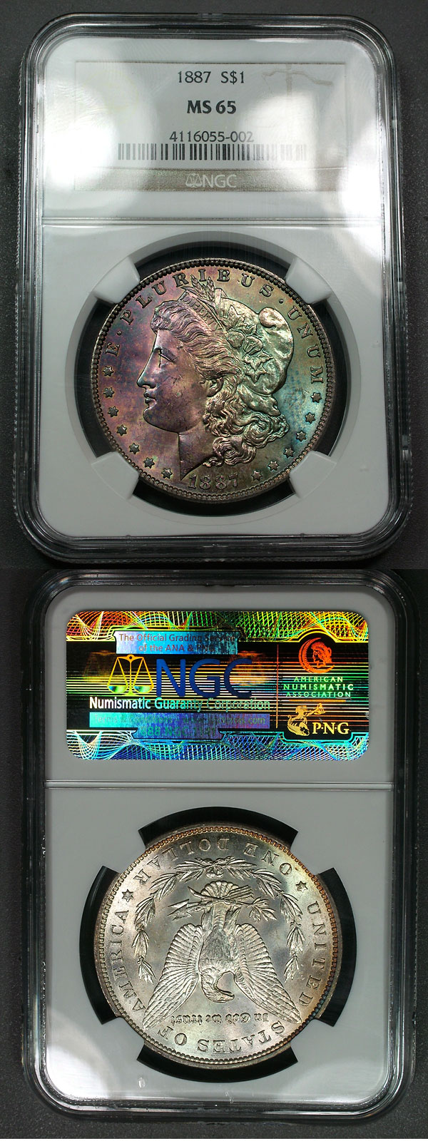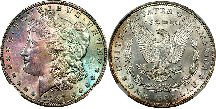 1887 $1 NGC MS65 Textile Toned Morgan Dollar